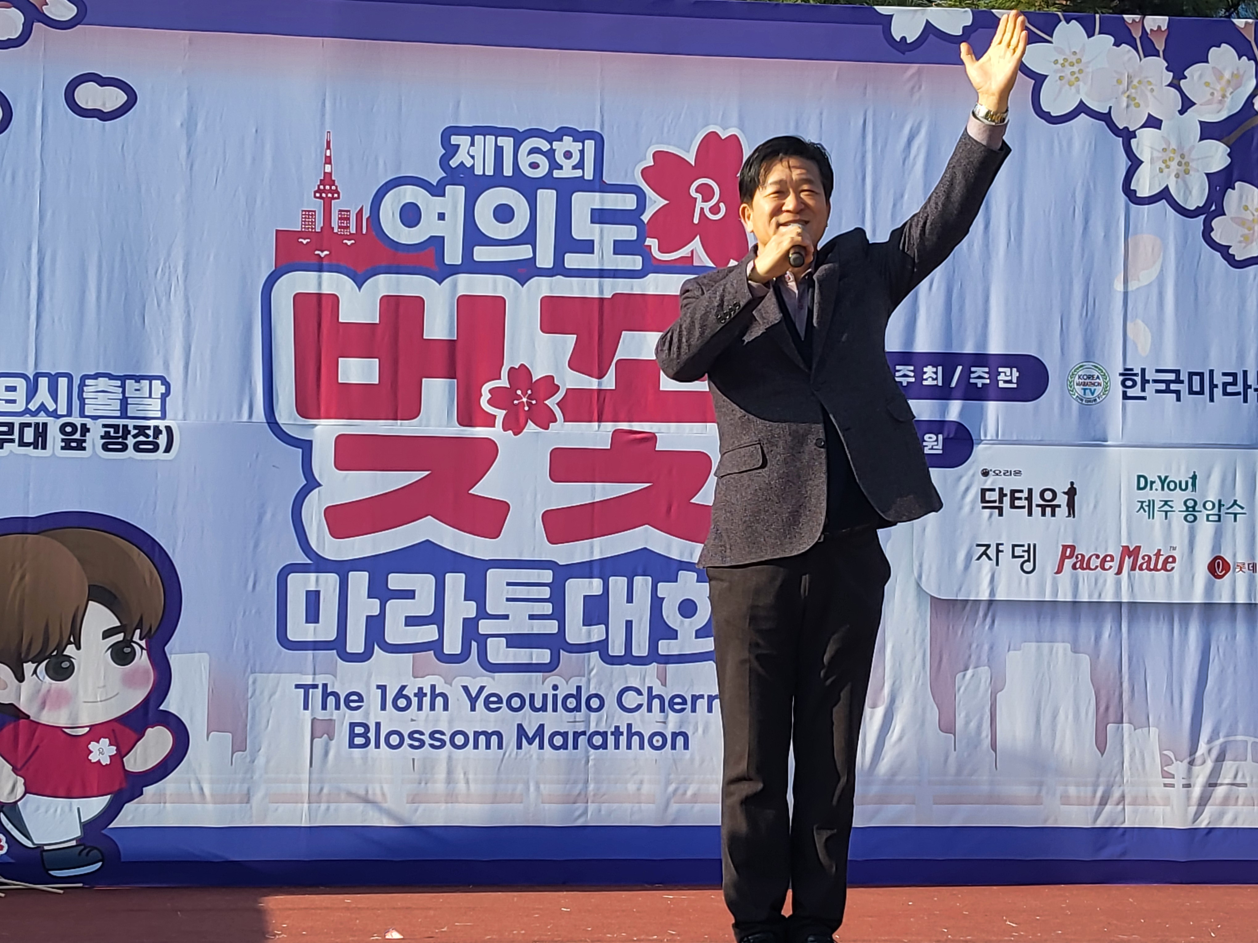 6천여 생활체육 마라토너 봄바람 속 질주.... 사. 대한생활체욱회 김균식 총재 출발 전 참가자 선수들에게 추운 날씨에 안전이 우선이라는 인사말을 하고 있다. 2026년 3월 8일 일요일 오전 9시 서울 여의도 고수부지 일원에서 제16회 여의도 벚꽃마라톤대회가 성대하게 개최됐다. 이번 대회는 한국마라톤TV, 여의도 물빛광장, 오리온, 롯데칠성음료 게토레이, 제주용암수, 쟈뎅, 대한생활체육회가 함께 주최·후원했으며, 전국에서 모인 생활체육 마라톤 동호인과 시민 등 약 6천여 명이 참가해 봄기운이 감도는 한강변을 힘차게 달렸다. 이날 하프 경기에서는 남자 10km 우승에는 1위 이승현. 2등. 김선우. 3등 김성룡 여자 10km ,우승에는 1위 정유진. 2위. 윤미라. 3위 김윤희 등이 영광의 메달을 획득했다. 대회는 생활체육 10km와 5km 코스로 진행됐으며, 참가자들은 여의도 한강공원 일대를 달리며 건강과 화합을 다지는 생활체육 축제의 장을 만들었다. 특히 가족 단위 참가자와 마라톤 동호회 회원들이 대거 참여해 현장은 활기찬 분위기를 보였다. 이날 행사에서 대한생활체육회 김균식 총재는 인사말을 통해 “마라톤은 건강을 지키는 최고의 생활체육이자 자신과의 도전”이라며 “참가자 모두가 안전을 최우선으로 즐겁고 건강하게 완주해 주길 바란다”고 당부했다. 특히 이번 대회에는 대만 선수단도 참가해 눈길을 끌었다. 해외 선수들은 한국의 마라톤 동호인들과 함께 여의도 한강변 코스를 달리며 국제 스포츠 교류의 의미를 더했다. 주최 측은 “여의도 벚꽃마라톤대회는 매년 생활체육 마라토너들이 기다리는 봄철 대표 마라톤 행사”라며 “앞으로도 생활체육 저변 확대와 건강한 스포츠 문화 확산을 위해 지속적으로 발전시켜 나가겠다”고 밝혔다. 이번 대회는 참가자들의 안전한 완주 속에 큰 사고 없이 마무리되며, 생활체육 마라톤 축제로서 큰 호응을 얻었다. 출처 : 한국생활체육뉴스(http://www.kstnews.co.kr) 클릭하여 기사보기