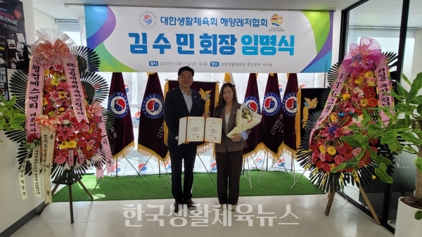 대한생활체육회(총재 김균식)는 2025년 10월 31일(금) 오후 2시, 서울시 금천구에 위치한 대한생활체육회 중앙본부에서 대한생활체육전국해양레저협회 초대 김수민 회장에 대한 임명식을 거행했다.