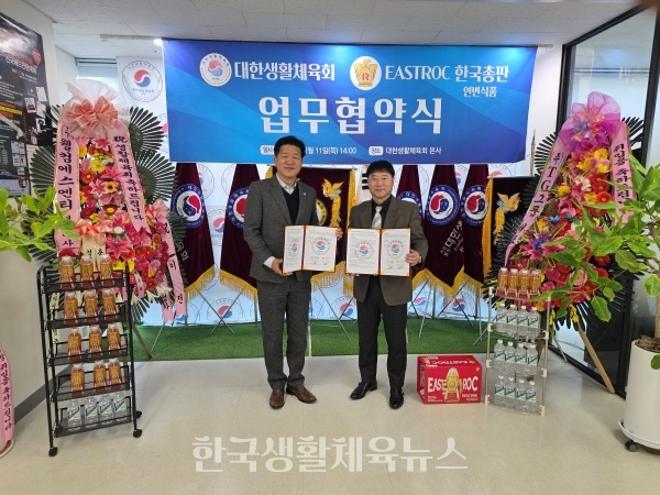 대한생활체육회(총재 김균식)는 12월 11일 공익법인(기획재정부 기부금단체) 대한생활체육회 본사에서 이스트록 비타민 에너지드링크 한국총판 연변식품(대표 이용철)과 상호 발전과 협력 강화를 위한 업무협약(MOU)을 체결했다.