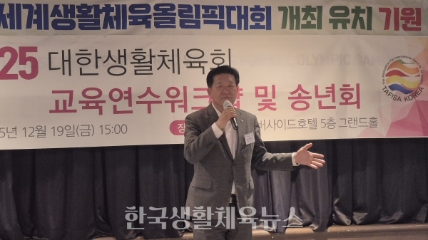 대한생활체육회 교육 워크숍 및 송년회가 2025년 12월 19일(금) 오후 3시, 서울 리버사이드호텔 5층 그랜드홀에서 대한생활체육회 회원 160여 명이 참석한 가운데 성대하게 거행됐다.