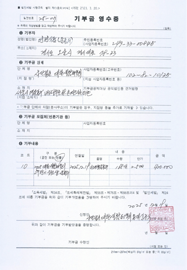 2025-12-19 2025 대한생활체육회 후반기 워크샵 기부금(현물)영수증