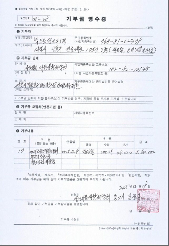 2025-12-19 2025 대한생활체육회 후반기 워크샵 기부금(현물)영수증 (넥스트팬지아)
