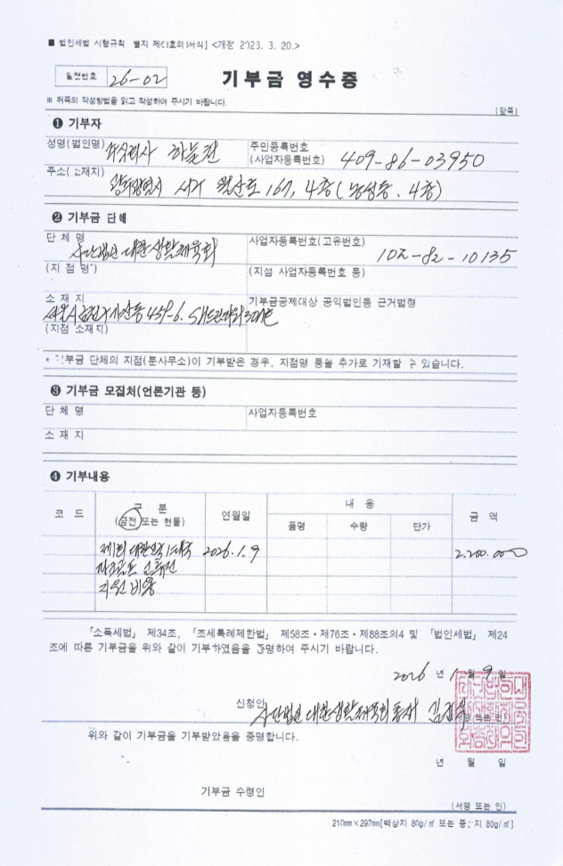 2026-01-09 제1회 대한민국/태국 파크골프 교류전 지원 기부금(현금)영수증