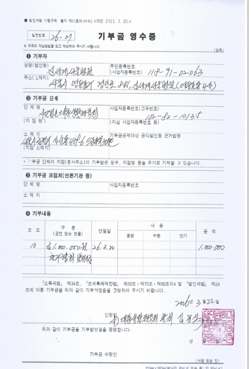 2026-03-22 제3회 제천청풍호배 전국직장,다문화축구대회 기부금(현금)영수증 - 대한생활체육회