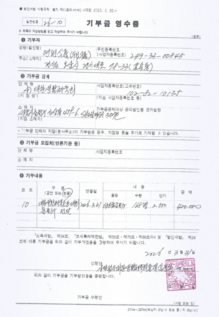 2026-3-31 대한생활체육골프협회&킹스데일CC 홀인원1억챌린지 골프대회 기부금(현물)영수증 - 대한생활체육회
